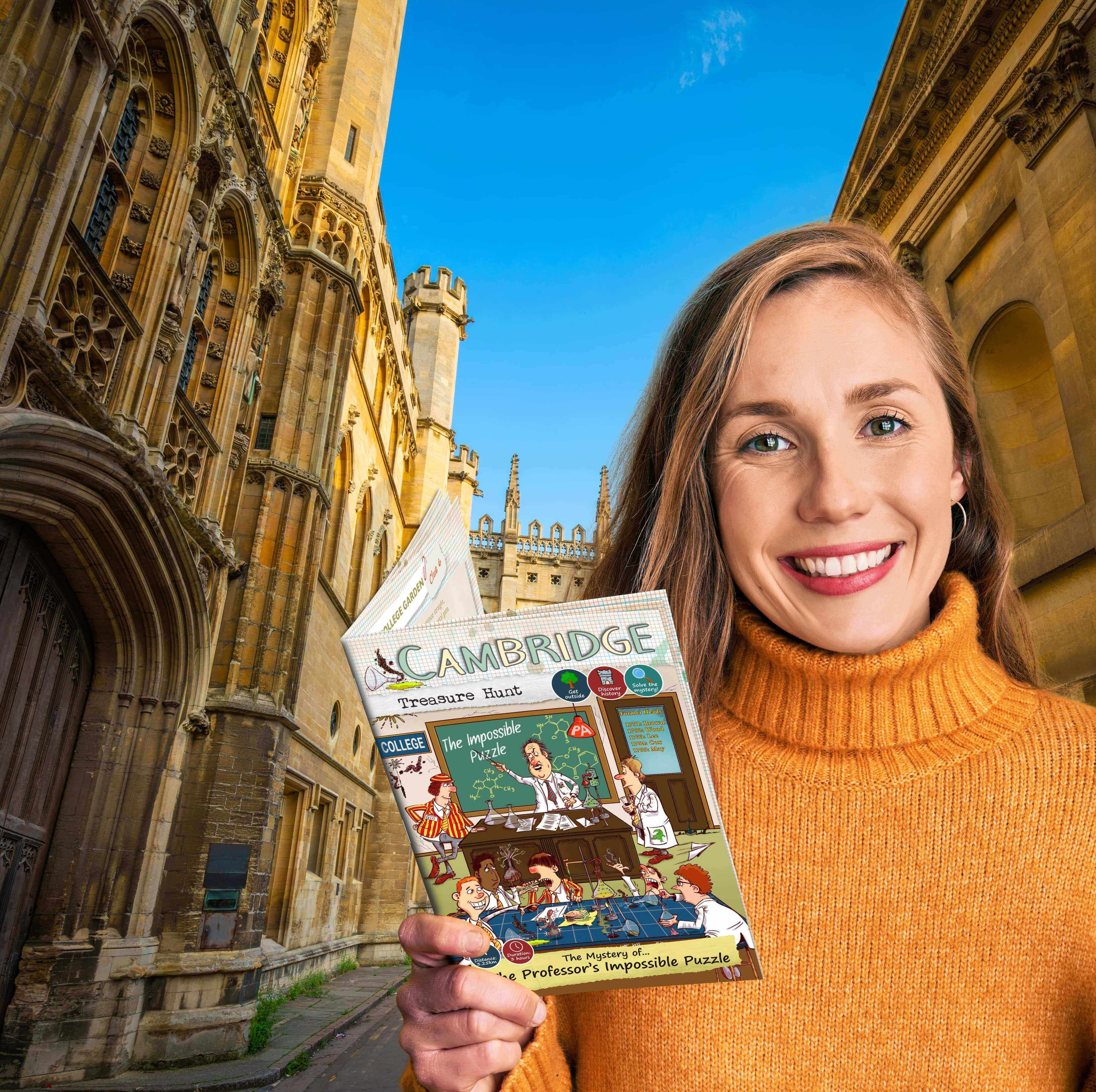 The pages of your Mystery Guide™ take you on an exciting puzzle adventure through the heart of historic Cambridge, as you follow the maps, unlock the clues, and unravel the epic tale.